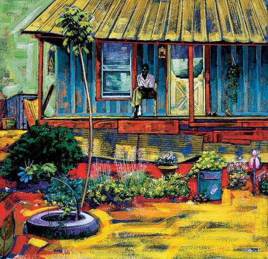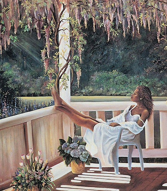 Relaxing on the Porch White Modern Wood Framed Art Print with Double Matting by Unknown