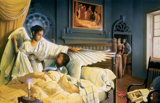 Guardian Angel White Modern Wood Framed Art Print with Double Matting by Unknown
