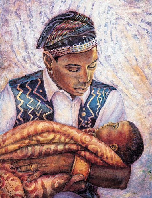 Father and Infant White Modern Wood Framed Art Print with Double Matting by Unknown