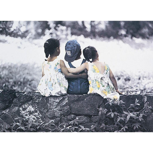 Three Kids Black Modern Wood Framed Art Print with Double Matting by Unknown