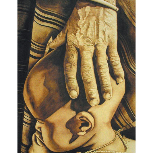 Mother and Child Black Modern Wood Framed Art Print with Double Matting by Unknown