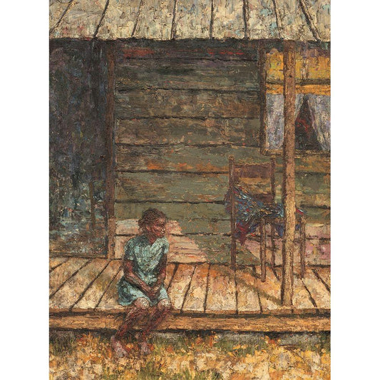 On the Porch Black Modern Wood Framed Art Print with Double Matting by Unknown