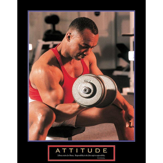 Attitude - Weight Lifter Black Modern Wood Framed Art Print with Double Matting by Unknown