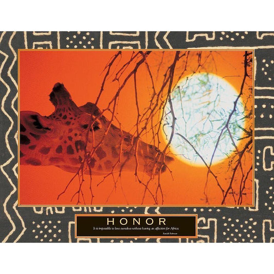Honor - Giraffe and Sun Black Modern Wood Framed Art Print with Double Matting by Unknown