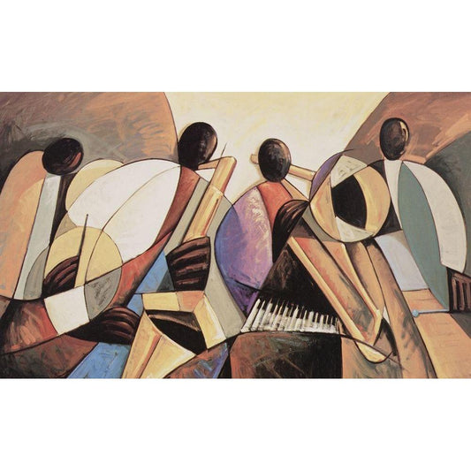 Sax and Strings Black Modern Wood Framed Art Print with Double Matting by Unknown