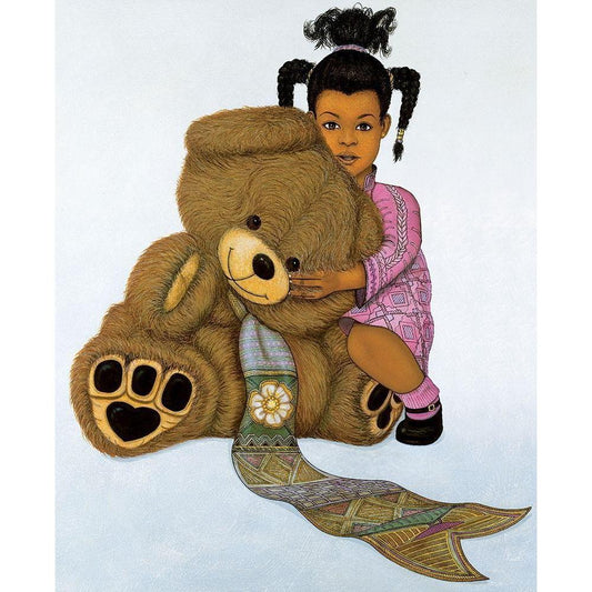 Girl and Teddy Bear Black Modern Wood Framed Art Print with Double Matting by Unknown
