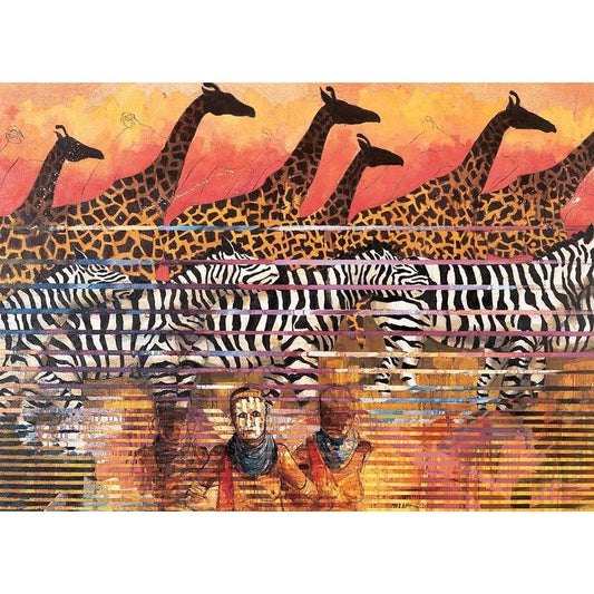 Giraffes Extreme Black Modern Wood Framed Art Print with Double Matting by Unknown