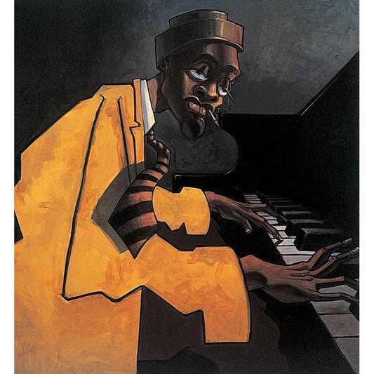 The Pianoman Black Modern Wood Framed Art Print with Double Matting by Unknown