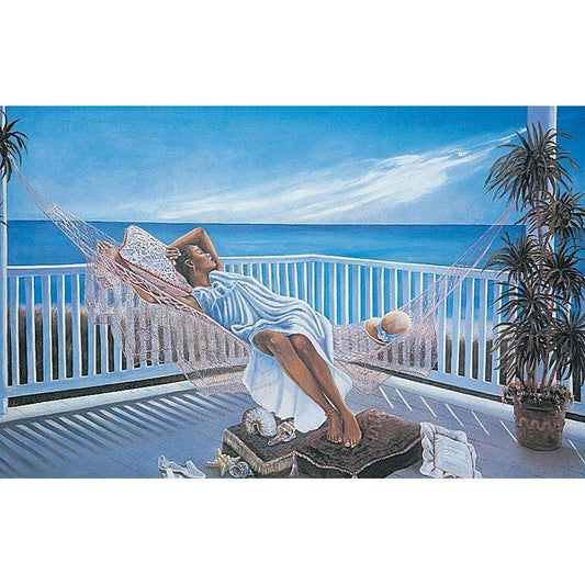 Hammock by the Sea Black Modern Wood Framed Art Print with Double Matting by Unknown