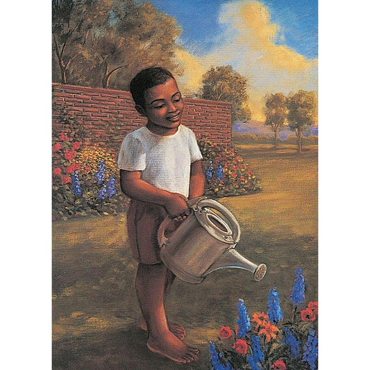 Watering the Flowers Black Modern Wood Framed Art Print with Double Matting by Unknown