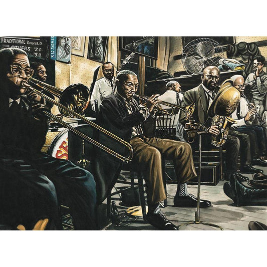 Blues Band Black Modern Wood Framed Art Print with Double Matting by Unknown