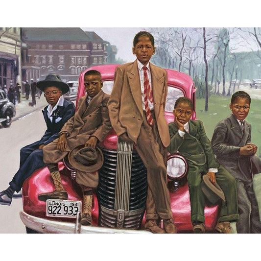 Off the Car Black Modern Wood Framed Art Print with Double Matting by Unknown