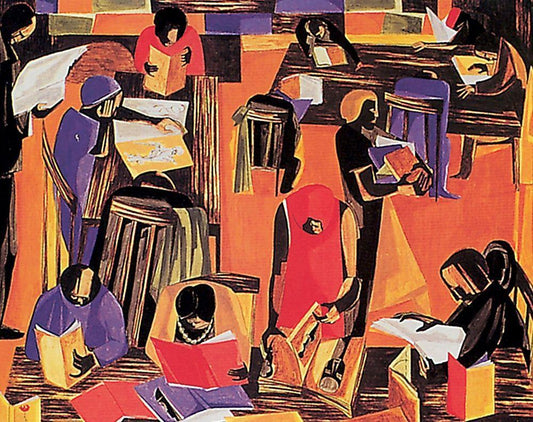 Reading White Modern Wood Framed Art Print with Double Matting by Unknown