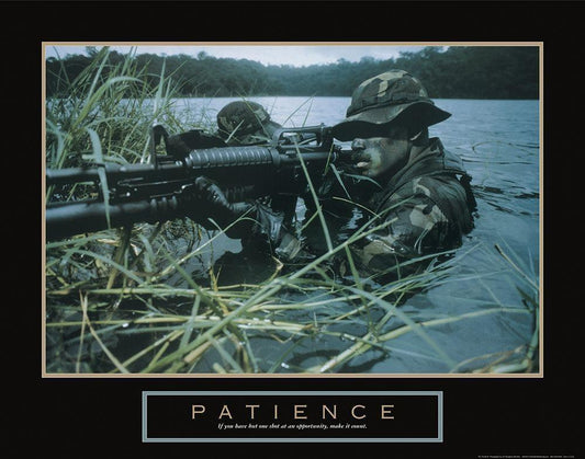 Patience - Sniper White Modern Wood Framed Art Print with Double Matting by Unknown
