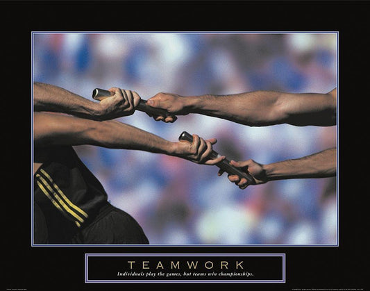 Teamwork - Track and Field White Modern Wood Framed Art Print with Double Matting by Unknown