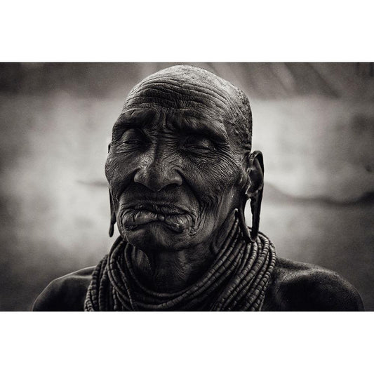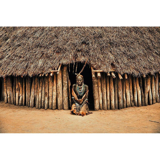 Woman Mursi Black Modern Wood Framed Art Print with Double Matting by Yosifov, Svetlin
