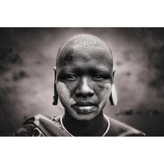 Surma Tribe Girl - Ethiopia Black Modern Wood Framed Art Print with Double Matting by Inazio Kuesta, Joxe