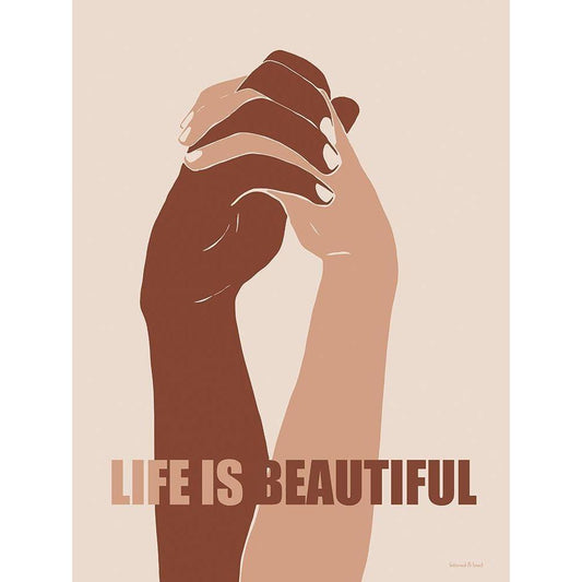 Life is Beautiful Black Modern Wood Framed Art Print with Double Matting by Lettered and Lined