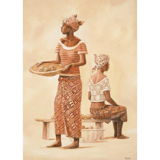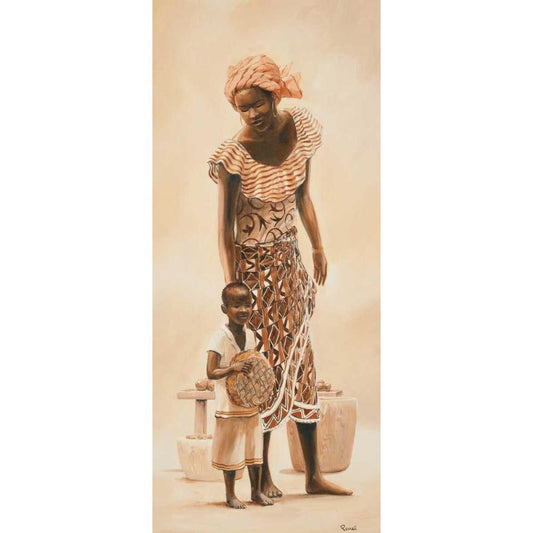 African family II Black Modern Wood Framed Art Print with Double Matting by Renee