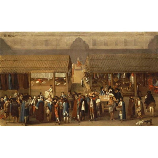 El Parian Black Modern Wood Framed Art Print with Double Matting by Mexican School