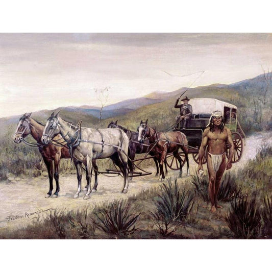 Halted Stagecoach Black Modern Wood Framed Art Print with Double Matting by Remington, Frederic