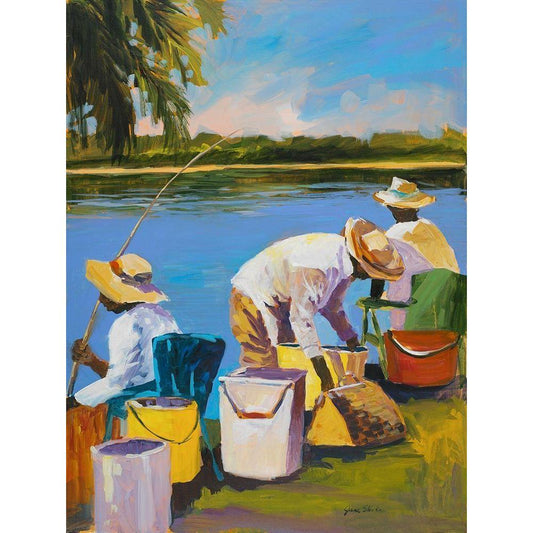 Fishing I Black Modern Wood Framed Art Print with Double Matting by Slivka, Jane