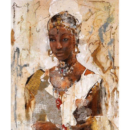 African Goddess on Beige Black Modern Wood Framed Art Print with Double Matting by Ritter, Gina