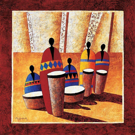 Les percussionnistes White Modern Wood Framed Art Print by Moga