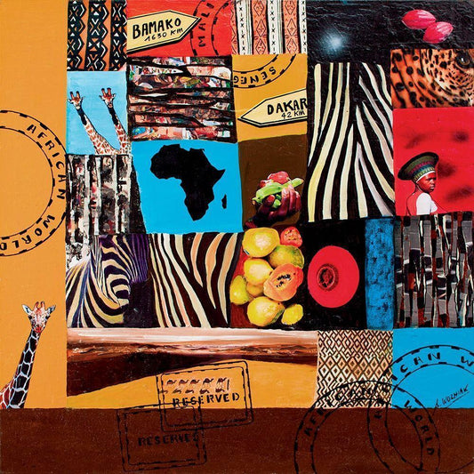 Composition Afrique White Modern Wood Framed Art Print by Moga