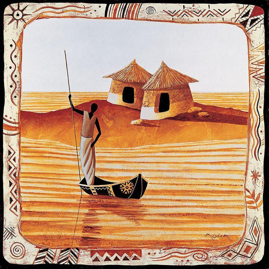 Le piroguier White Modern Wood Framed Art Print by Moga