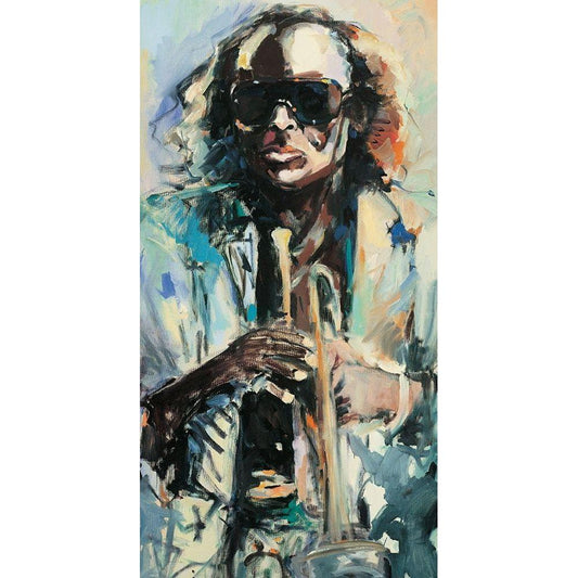 Saxin the Blues White Modern Wood Framed Art Print by Unknown