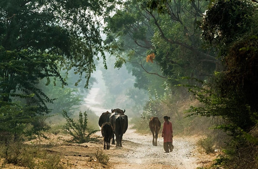 A Young Mundari Herder At Work White Modern Wood Framed Art Print with Double Matting by Cole, Trevor