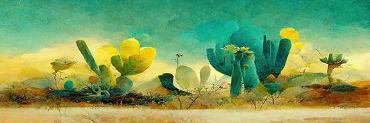 Cactuses White Modern Wood Framed Art Print with Double Matting by Treechild