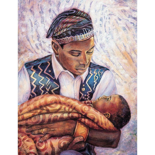 Father and Infant White Modern Wood Framed Art Print by Unknown