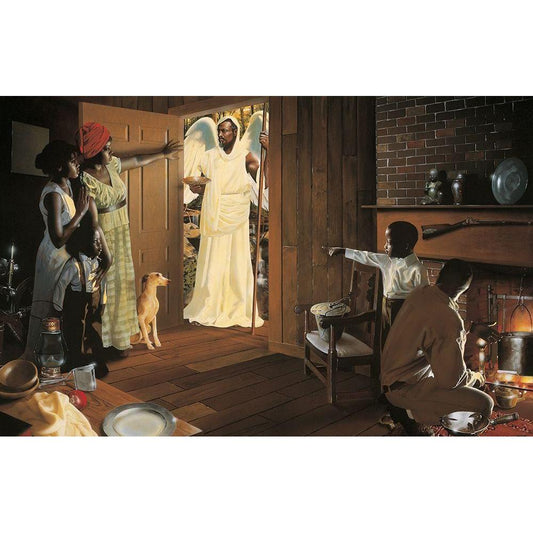 Angel at the Door White Modern Wood Framed Art Print by Unknown