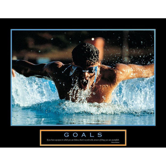 Goals - Swimmer White Modern Wood Framed Art Print by Unknown