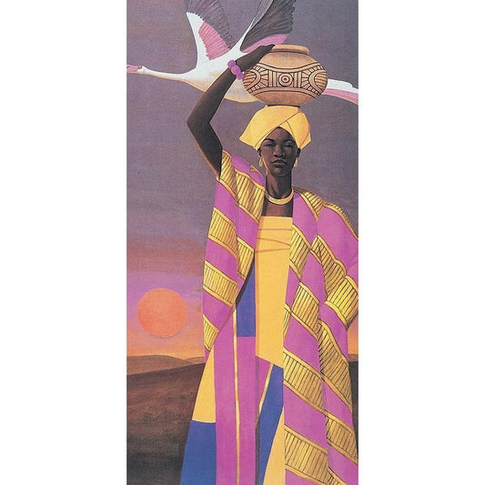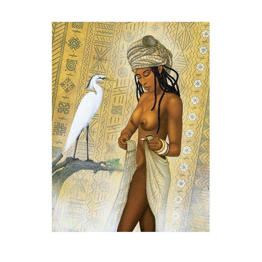 Nubian Princess and Heron White Modern Wood Framed Art Print by Unknown