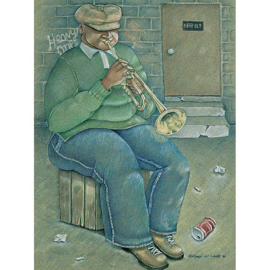 Big Boy Trumpets White Modern Wood Framed Art Print by Unknown