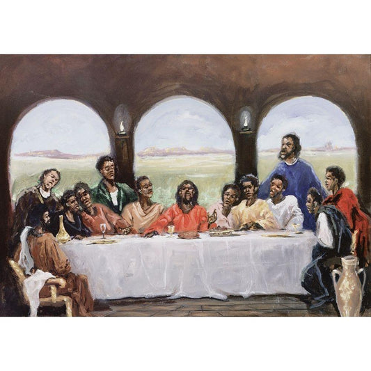 Black Last Supper White Modern Wood Framed Art Print by Unknown