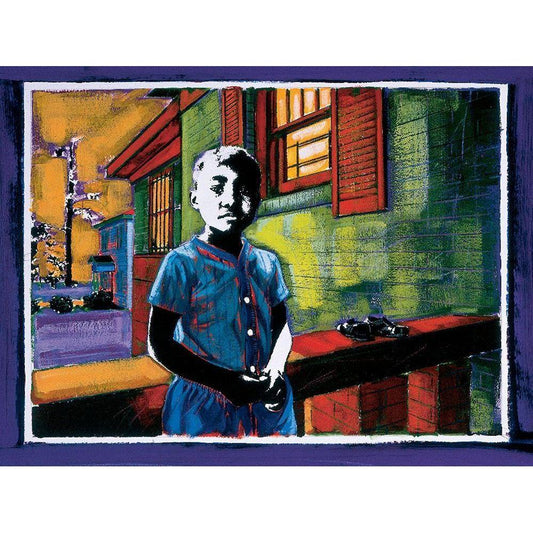Boy on Stoop White Modern Wood Framed Art Print by Unknown