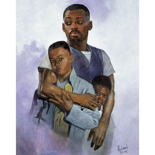Father and Sons White Modern Wood Framed Art Print by Unknown