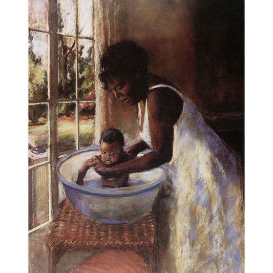Washing Baby White Modern Wood Framed Art Print by Unknown