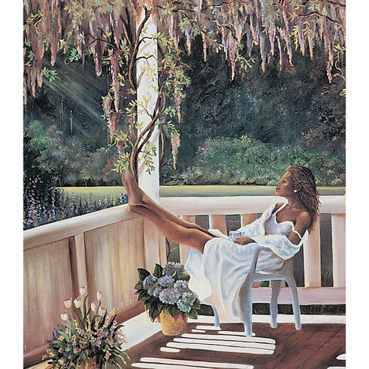 Relaxing on the Porch White Modern Wood Framed Art Print by Unknown