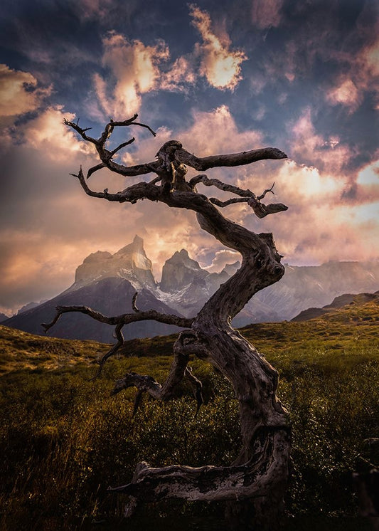 Fitz Roy Mountain in Autumn White Modern Wood Framed Art Print with Double Matting by And Hongchao, Gu