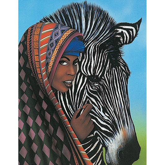 Woman and Zebra White Modern Wood Framed Art Print by Unknown