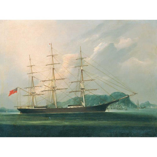Ship Moravian off Hong Kong White Modern Wood Framed Art Print by Anon, Chinese 1866