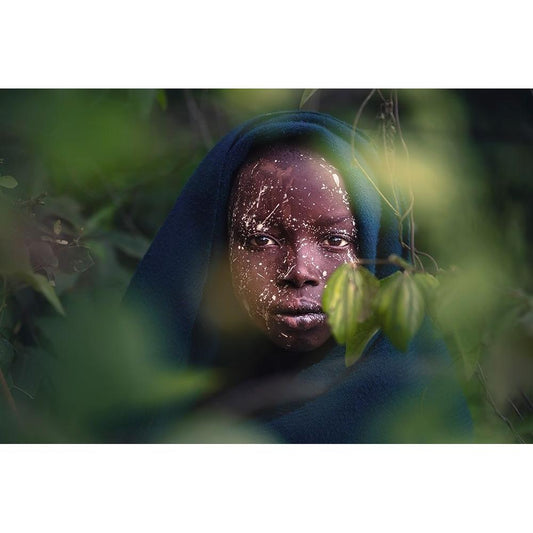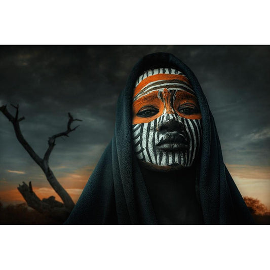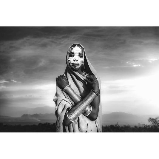 Portrait Woman Mursi White Modern Wood Framed Art Print by Yosifov, Svetlin