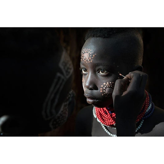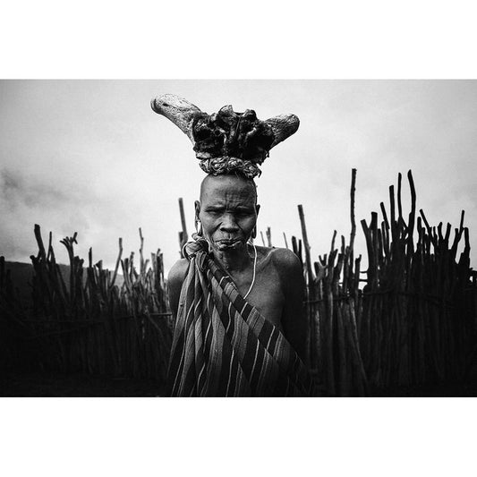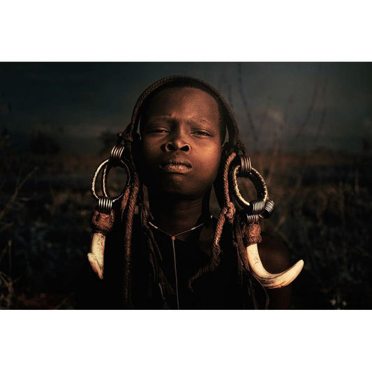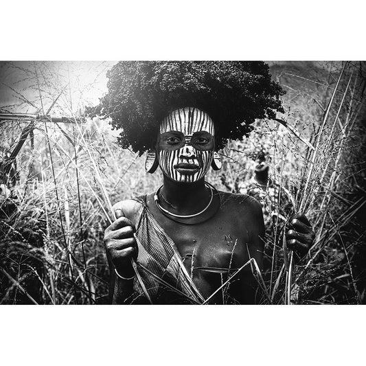 Ethiopian Suri Tribes White Modern Wood Framed Art Print by Intarob, Sarawut