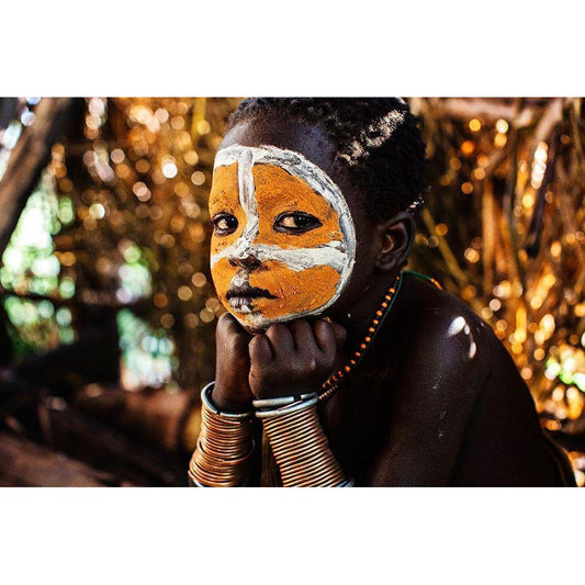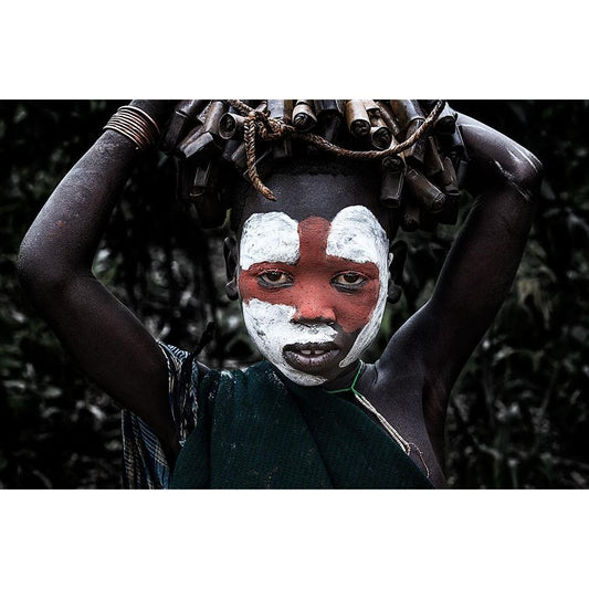 Surma Tribe Girl - Ethiopia White Modern Wood Framed Art Print by Inazio Kuesta, Joxe