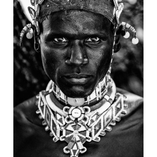 Samburu Man White Modern Wood Framed Art Print by Vidak, Vedran